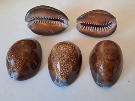 Conchas marinas endémicas de la Isla de Pascua (Océano Pacífco) usadas como amuletos de buena suerte y protección ante las malas vibraciones y energías de gente